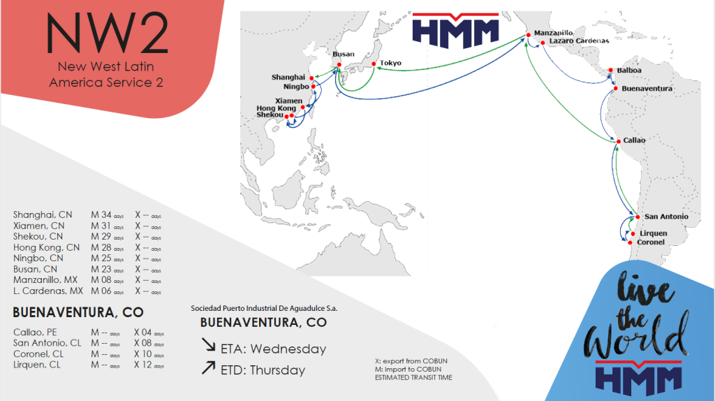 Buenaventura – Southampton GB – Le HavreFR- Rotterdam NL- Hamburg DE – Antwerp BE